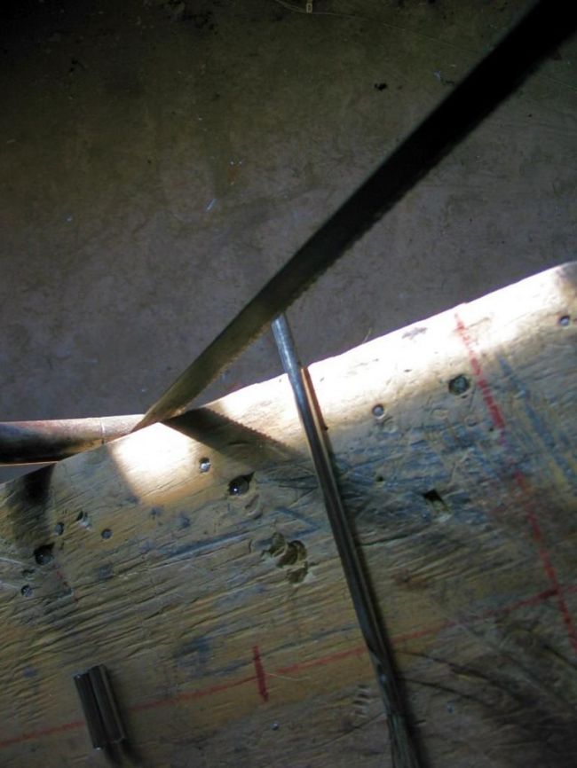 Впоследствии берется крышка от крупного цилиндра и с помощью зубила в ней нужно вырубать отверстие подходящего диаметра. Для этого берется банка малого диаметра, ставится на крышку и затем вокруг нее обводится круг.