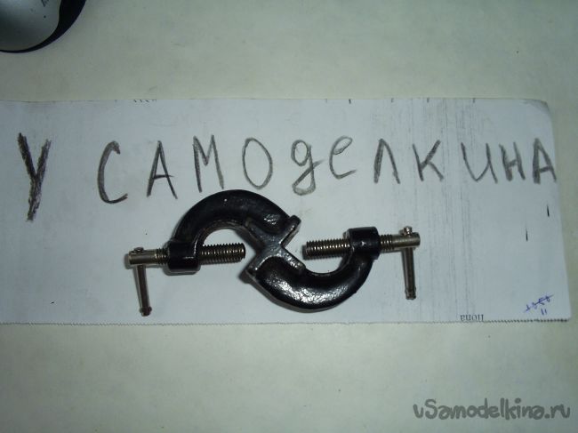 Следующая деталь это еще одна так сказать струбцина или зажим в принципе можете его назвать хоть муфтой для лапок и колец, он не обидится. Вот он этот подлый тип, а подлость его в том, что в нужный момент его никогда не найдешь (попал ко мне вместе с подаренным автомобилем, под коврик спрятался, видимо не только я его не находил).