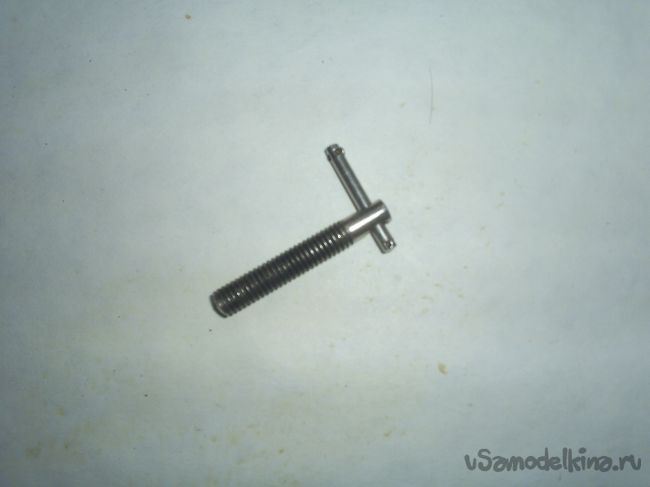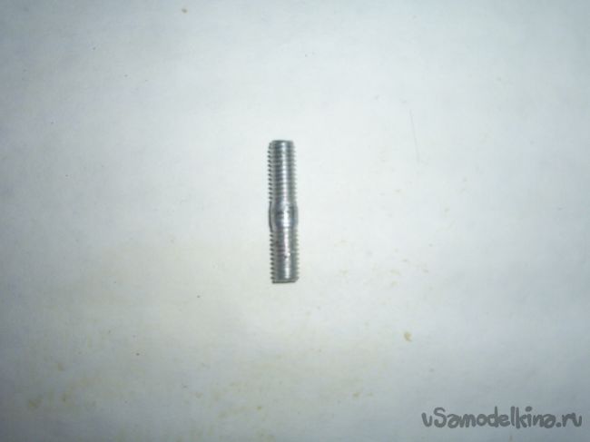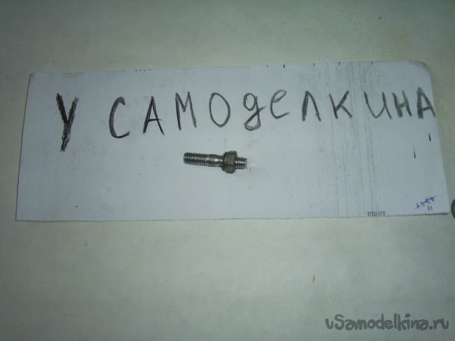 Гайку накручиваем на шпильку, а можно шпильку вкрутить в гайку, ну а я скрутил гайку со шпилькой. С начало надо проверить на какую глубину шпилька будет входить в фотоаппарат, затем закрутить гайку до этого места, гайка мне попалась с пластиковой вставкой.