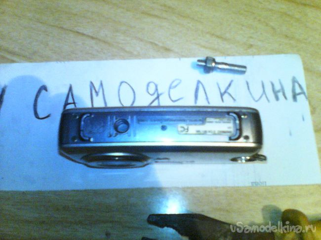 Дальше я выкрутил прижим (который на фото с низу) и собрал шпильку с гайкой, пружинку, шайбу и фотоаппарат воедино и вкрутил в место него.