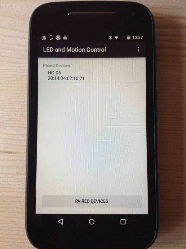 Paired Devices Activity показывает доступные для подключения Bluetooth устройства. Как только устройства соединятся, управление передается LED and Motion Control Activity.