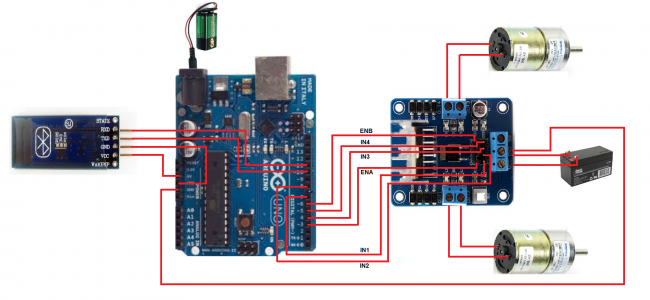 Arduino uno, HC-06 Bluetooth Module, два редукторных мотора 300 RPM 12v, Н-мост L298N Dual H Bridge Motor Controller