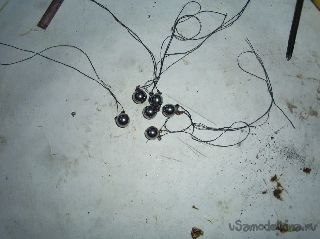 Колечки, чтобы были хоть чуть-чуть похожи друг на друга, сверял с уже готовым. Потом проделал те же манипуляции с остальными шариками.