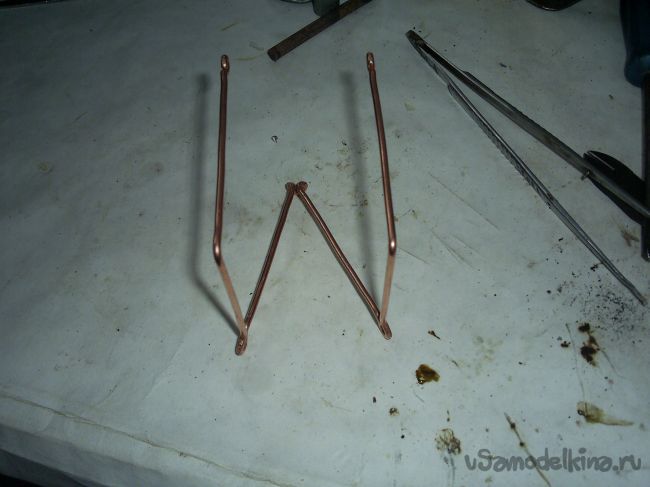 Очистив от изоляции провод сечением четыре квадратных миллиметра начал делать каркас будущего маятника.