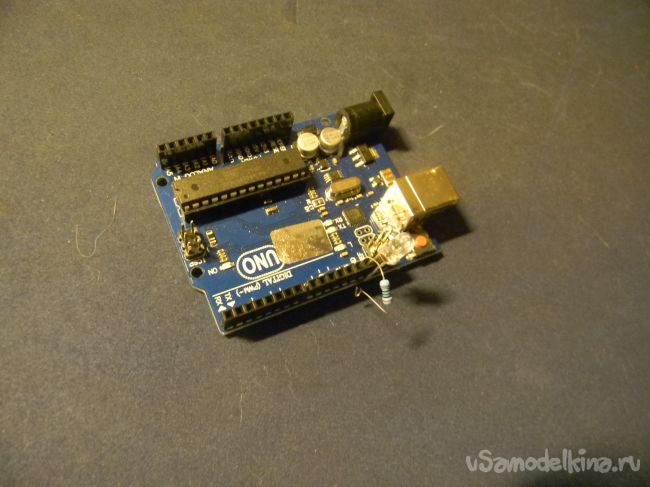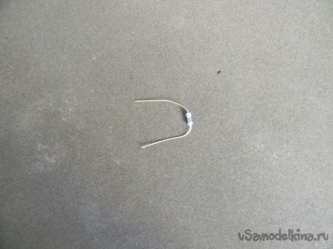Соединяем 1 ножку резистора и длинную ножку светодиода