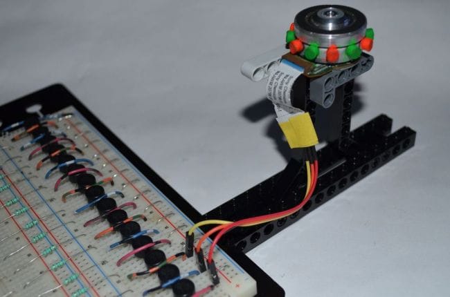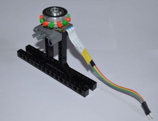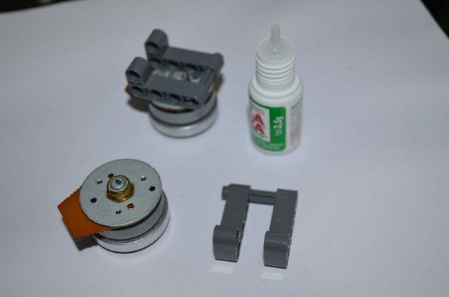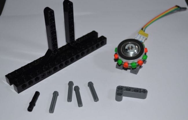 С помощью цианакрилового клея. Не хотите LEGO- придумайте свой кронштейн. Затем разместите на двигателе магниты, так, чтобы их полюса чередовались S-N-S-N-S. Автор про это не пишет, но, наверное, лучше в какой-нибудь программе заранее расчертить расположение магнитов.