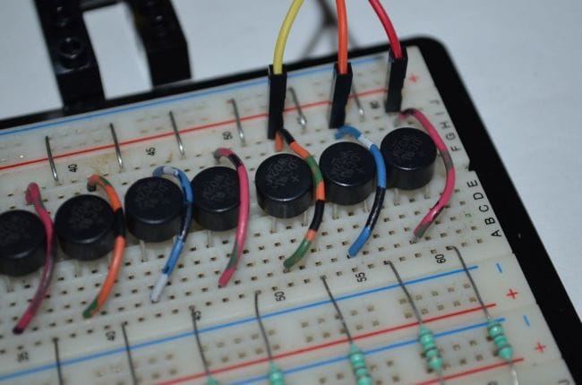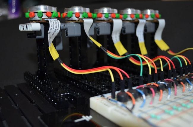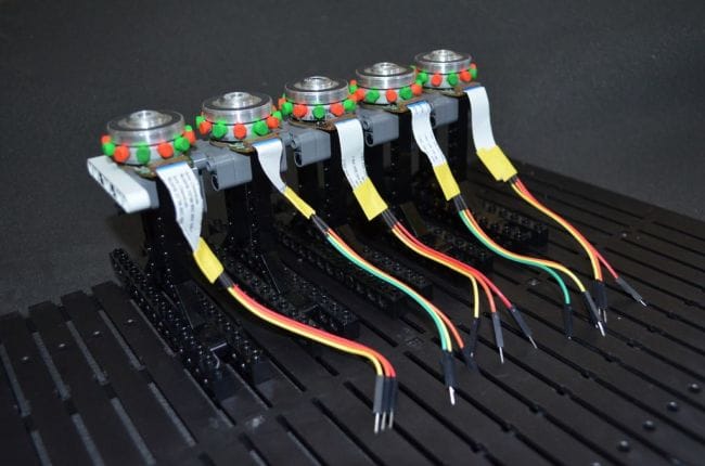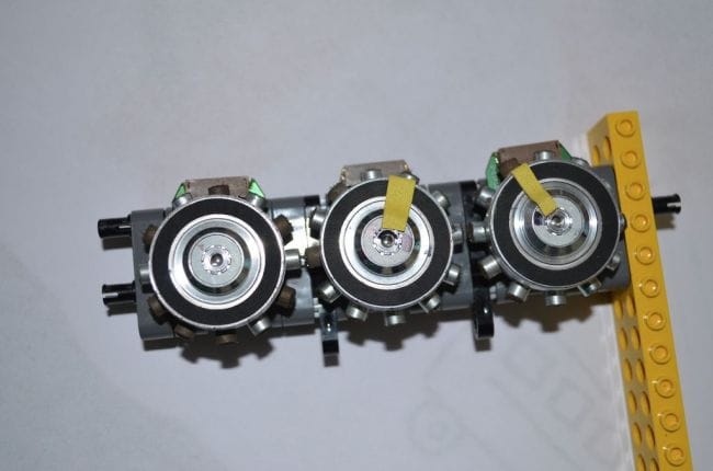 Расположите двигатели рядом друг с другом, как показано на фото. Чем ближе вы расположите двигатели друг к другу, тем более высоких скоростей можно будет добиться без потери синхронизации между двигателями.