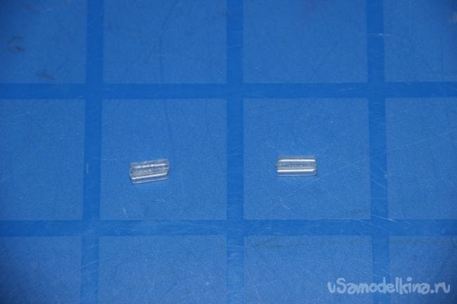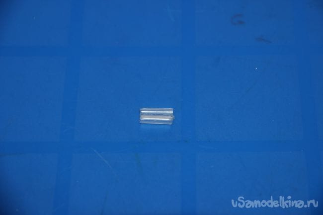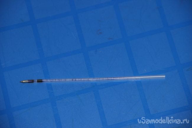 Шаг 5: Затем берём стержень от ручки, и отрезаем от него кусочки по 1 см. Должно получится 4 кусочка. И дальше склеиваем 2 кусочка друг с другом, как показано на фото.