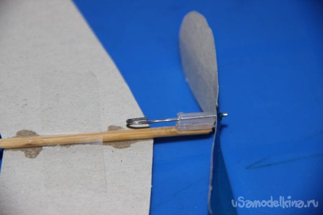 Шаг 8: Из скрепки делаем крючок. И прикрепляем его к пропеллеру.