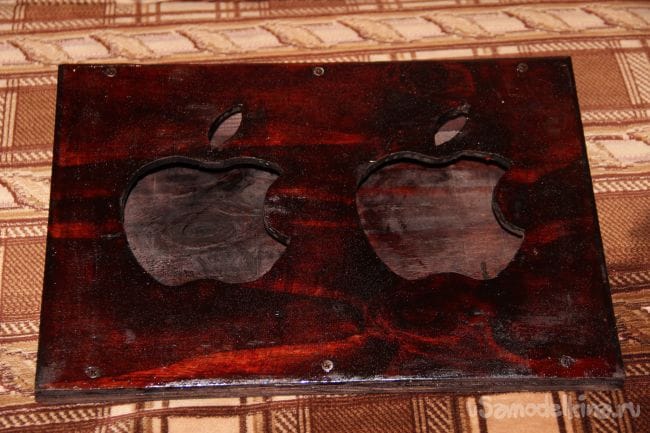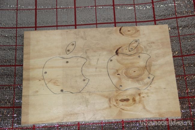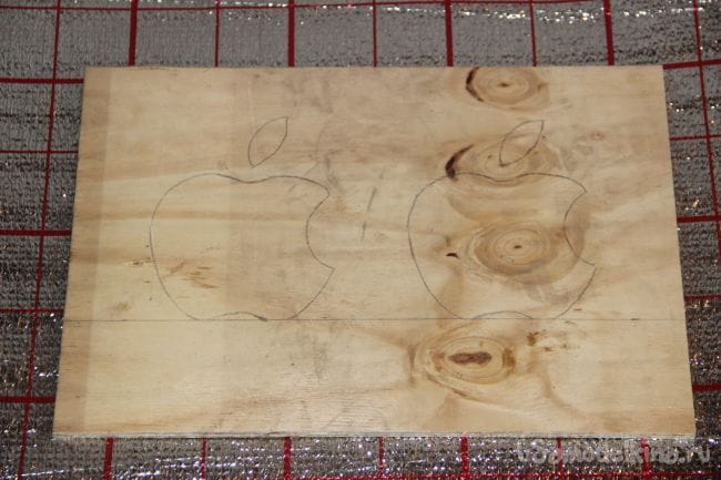 Шаг 2: Далее я вырезал из бумаги значок "Apple". Перевёл рисунок на фанеру, которая по ширине немного меньше.