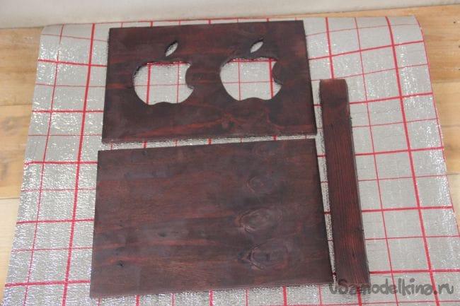 Шаг 4: Зачищаем наждачной бумагой все заготовки и покрываем их морилкой. Нужно покрыть все стороны.