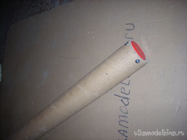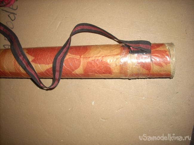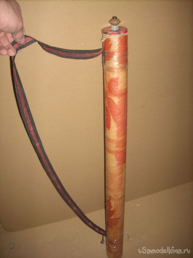 Всё! Почти готово! Нужно закрепить на нём какой-нибудь ремень для удобной переноски. Я это сделал при помощи скотча. Заодно обмотал тубус обёрточной бумагой и примотал поверху скотчем.