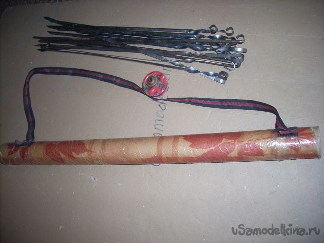 Теперь шампура стало очень удобно носить и возить в машине - они не разлетаются, ничего не колют. А в кладовке тубус с ними удобно повесить на стене, чтобы не занимал места.