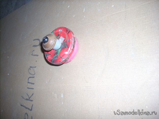 Далее, берём крышку большего диаметра и оставшуюся маленькую, сверлим в центрах отверстия и соединяем при помощи мебельной ручки от старой шуфлядки. А потом к маленькой крышке приматываем скотчем наш второй "барабанчик. (Я примотал изолентой) Получается крышка для нашего тубуса: