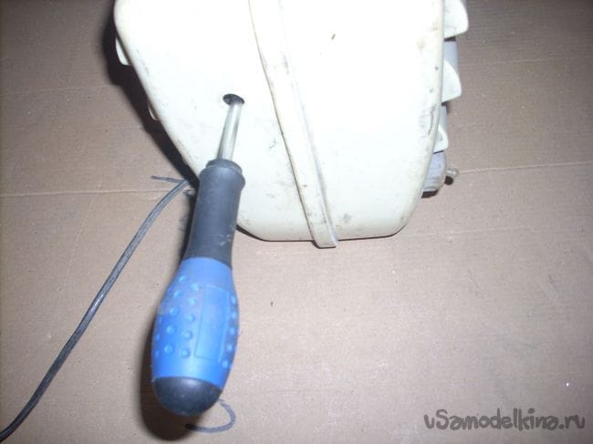 Для начала я отвернул крыльчатку-активатор, застопорив ротор отвёрткой через специальное отверстие в задней части корпуса двигателя.