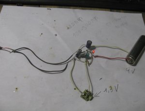 3. Далее припаиваем разъемы питания, вход и выход для микрофона, выключатель питания. Разъем для джека на 6,3 мм. я взял от старого DVD проигрывателя, джек на 3,5 мм. – от магнитофона. Разъем для батареи от нерабочей кроны, выключатель от игрушечной машинки. Припаиваем все к плате.
