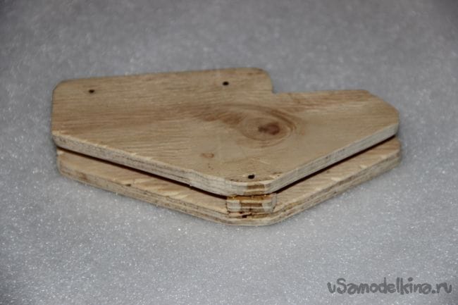Шаг 3: С помощью небольших гвоздиков собираем наши детали в едино. Спусковой механизм должен передвигаться по основе "дробовика" свободно, для этого нужно между накладками спускового механизма положить плотную бумагу.