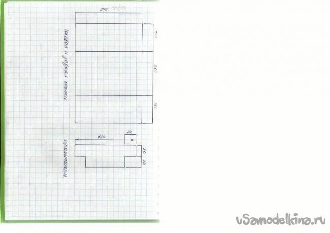 Для начала я начертил выкройку будущей кормушки. Вот такую: