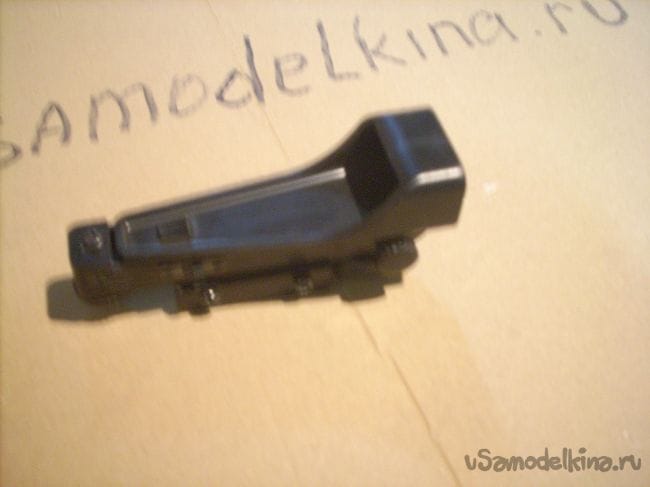 Корпус выполнен из пластмассы, поэтому для использования на настоящем оружии он не подходит. Но для самоделок - в самый раз! Крепится на планку 11 мм. Амплитуда крепления очень большая, поэтому легко закрепится на любую планку, примерно такой ширины. Не требует специальных инструментов - крепление выполняется при помощи обычной отвёртки. Регулировка обладает очень большой амплитудой, и выполняется вращением пальцами двух маховичков - горизонталь и вертикаль.