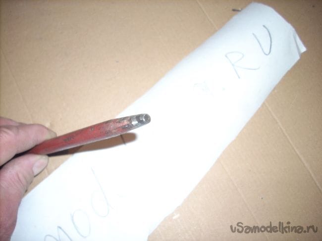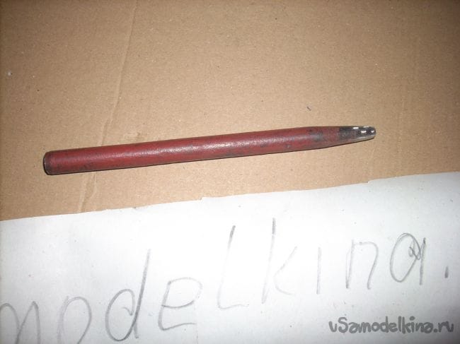 Для удобства хранения на другом конце я просверлил отверстие (чтобы вешать на гвоздь), сам этот конец закруглил, а рукоятку обмотал изолентой: