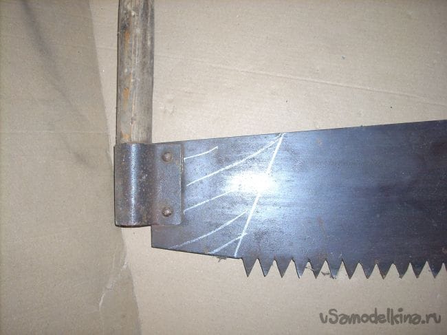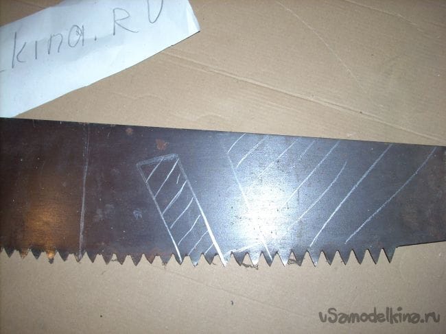 Для начала я нарисовал на старой пиле будущую мою ножовку: