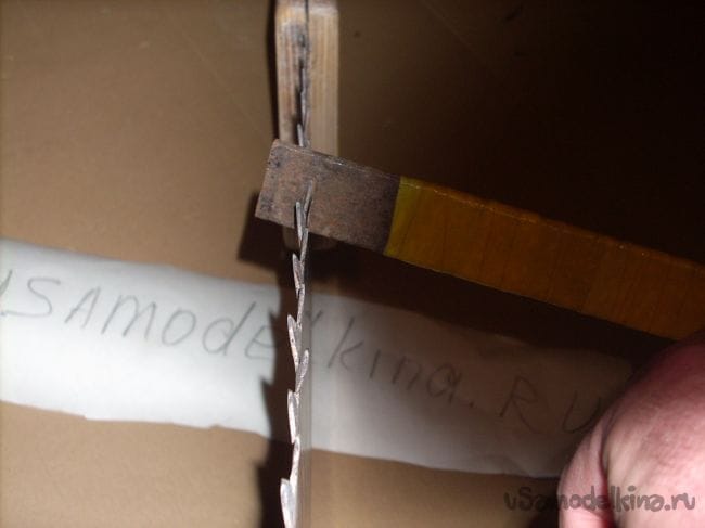 Теперь аккуратно, чтобы не поломать зубья, делаем разводку через один, примерно на три - четыре миллиметра: