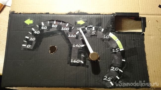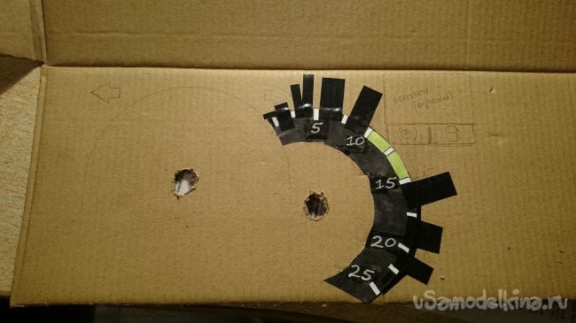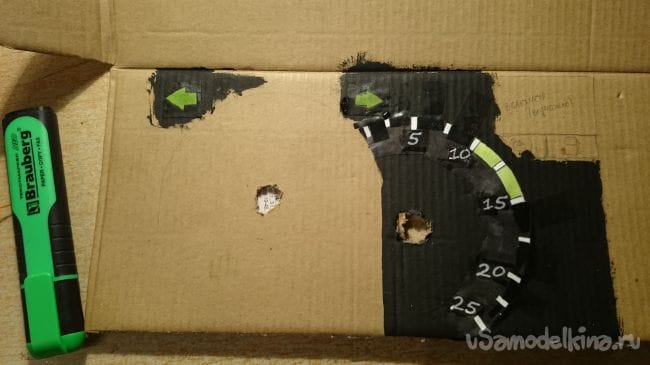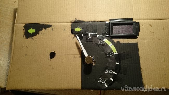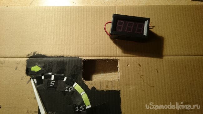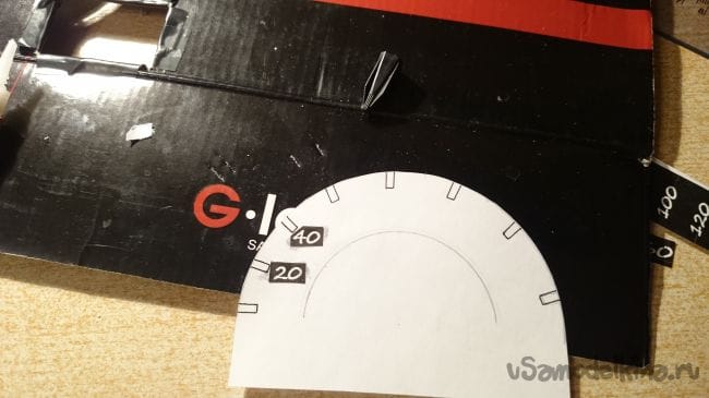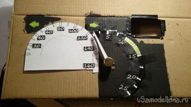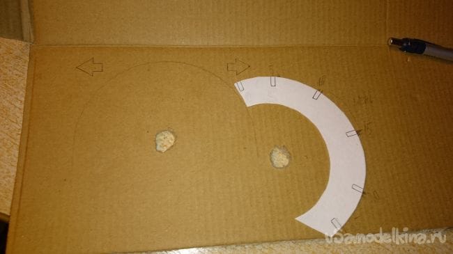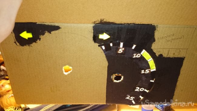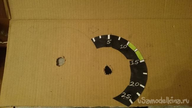 Дальше нужна картонка побольше, прикидываем стрелки и отрисовываем шкалы: