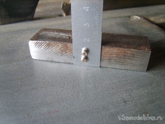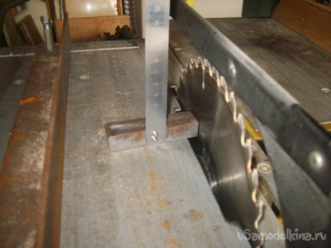 Для измерения различных размеров, когда требуется свободные обе руки. Вот такой измеритель. Очень удобен для настройки пил, фрез и т. д. Основание отрезок металла от токарного резца. И обычная металлическая линейка. Рекомендую. Затраты небольшие, но очень удобно.