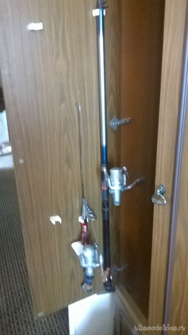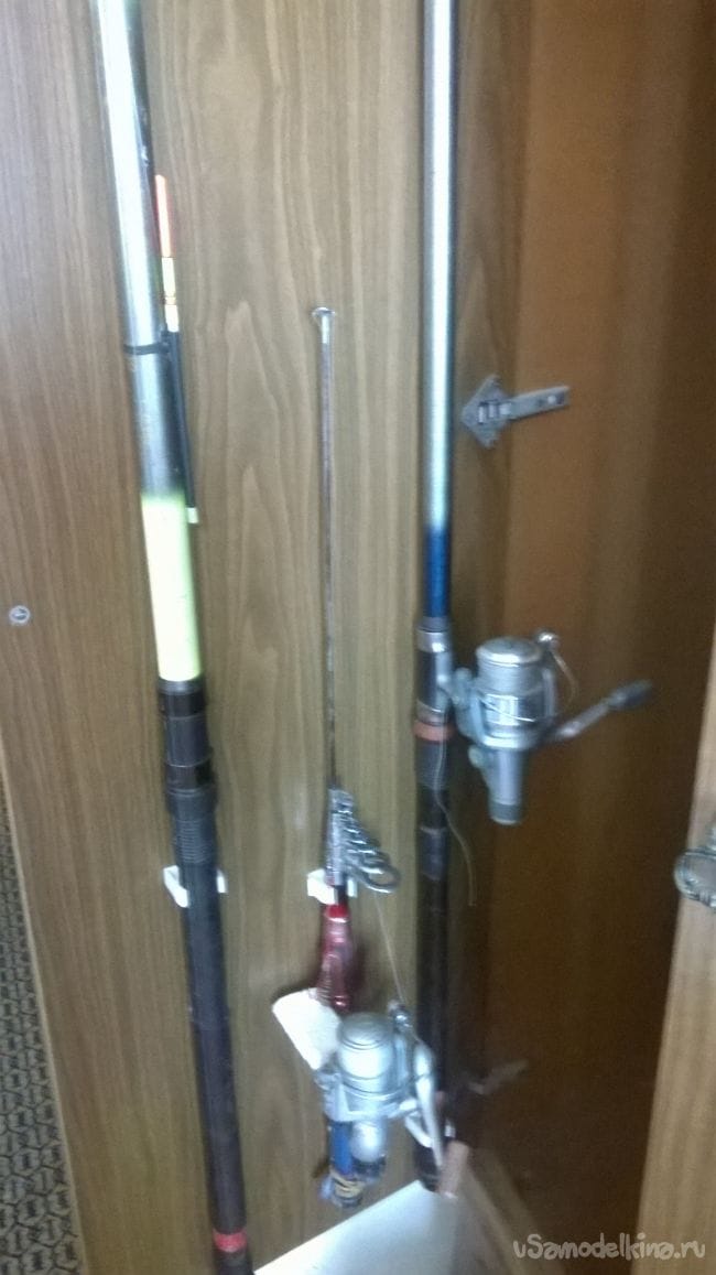 Хранение рыболовного снаряжения всегда составляла проблему. У меня для этих целей отдельный вещевой шкаф. Но удилища в нем постоянно спутываются. И я решил при помощи креплений для пластиковых труб, устранить эту проблему.
