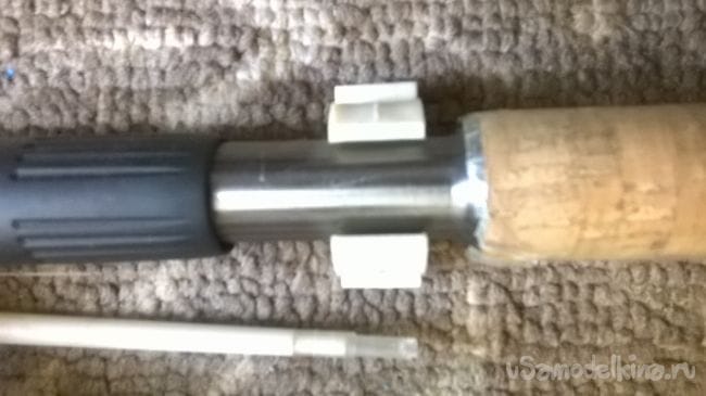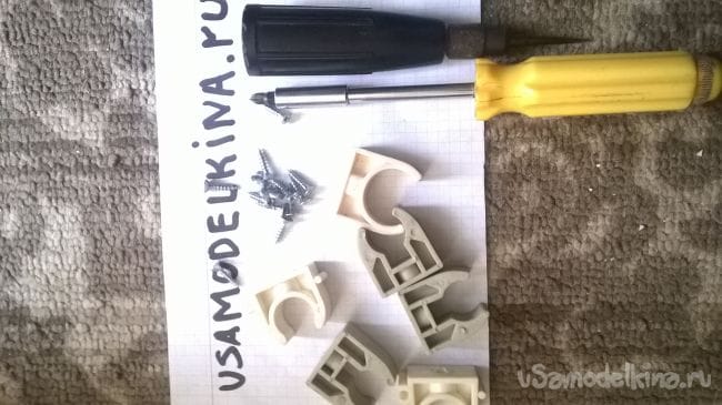 Крепления для пластиковых труб,разного диаметра.Главное чтоб они плотно защелкивались на удилеще