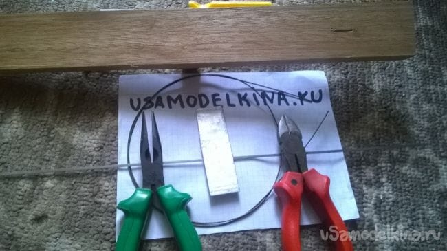 Закрепляем ее на самом концу дощечки, вместе с проводным кольцом