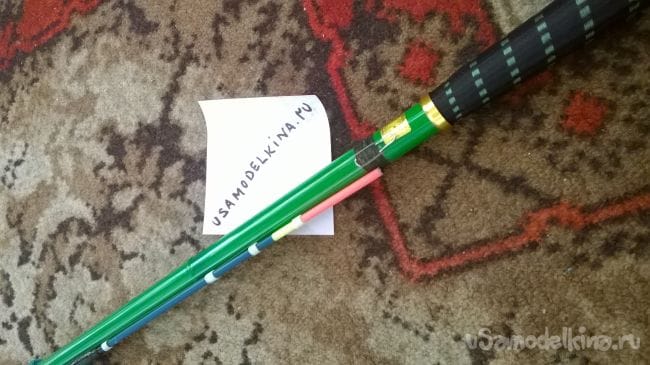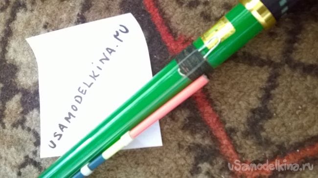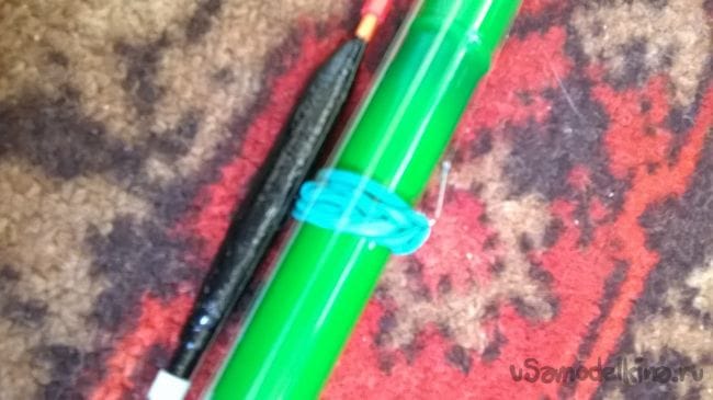 Такая же операция с другой стороны удилища. Осталось только надеть аптечную резинку, для фиксации крючка.
