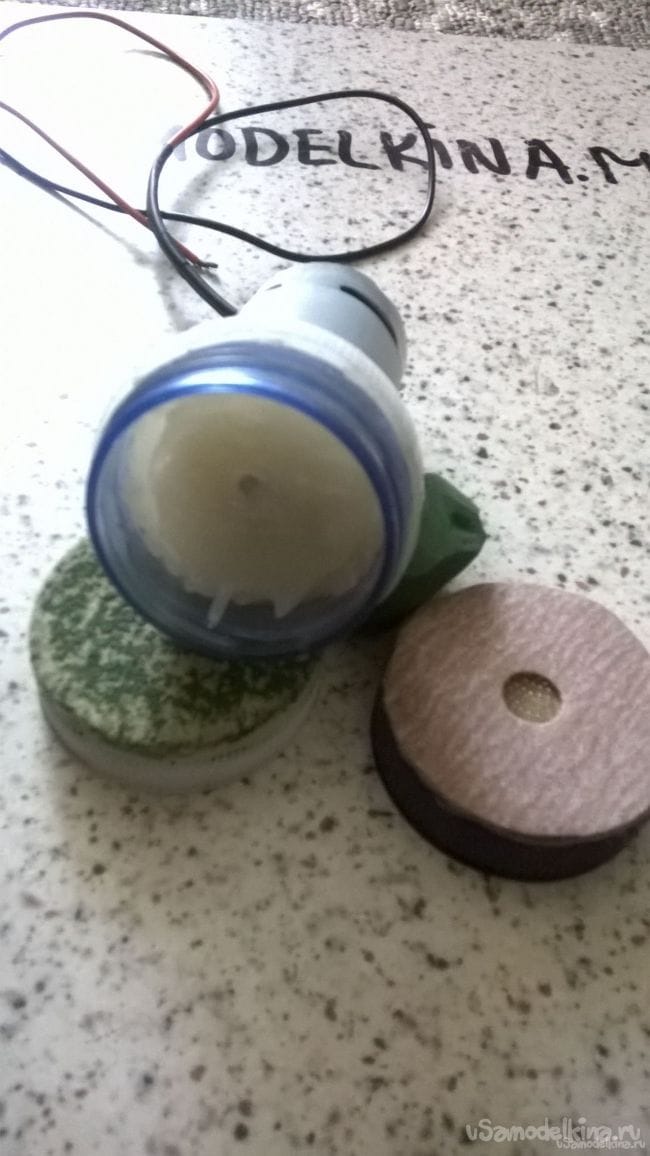 Я взял из разбитого шуруповерта движок на 18v. Двигатель подойдет любой от 6В и выше.И использовал его для шлифовки и полировки металлических поверхностей.
