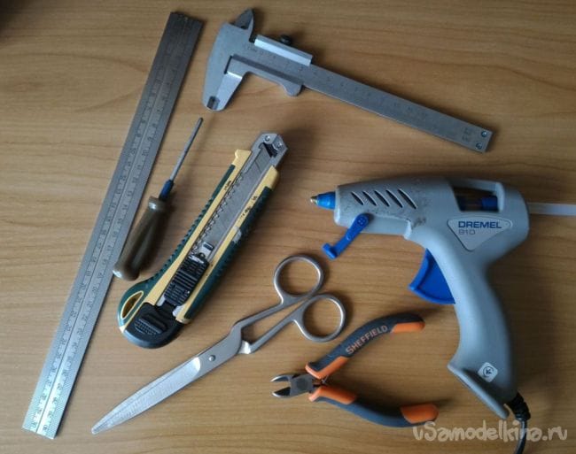 Далее понадобится небольшой кусочек листового пластика, толщиной 1,5 – 2 мм. У меня под рукой такого не оказалось, поэтому пришлось импровизировать. Мягкий пластик от упаковок отличная замена, если склеить в несколько слоев.