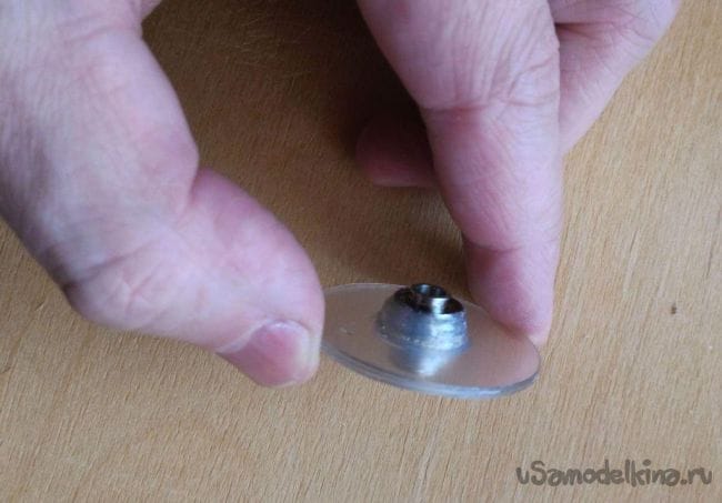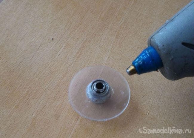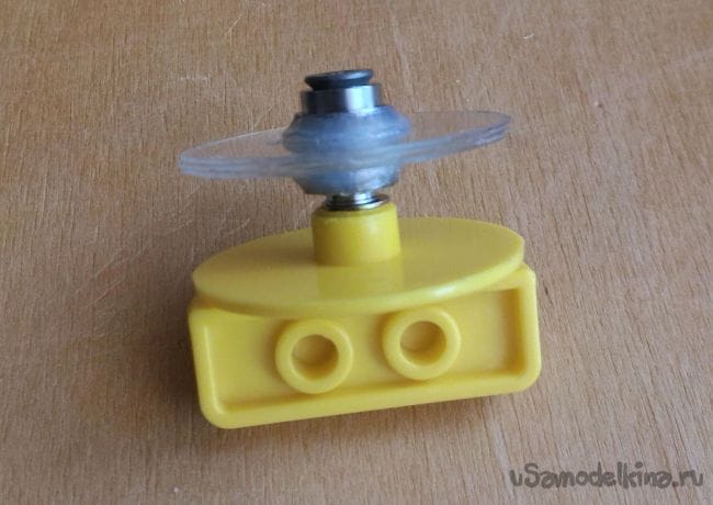 Полученные детали надеваем на подшипник (подшипник взят из жесткого диска от компьютера – на нем крепился кронштейн блока магнитных головок, схема такого подшипника на фото) и закрепляем при помощи термо-клея.