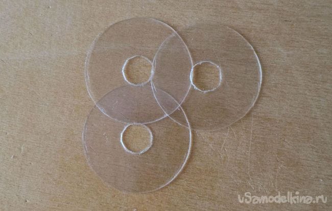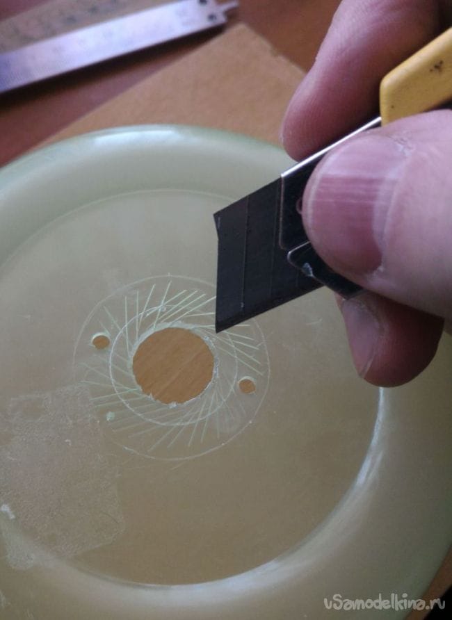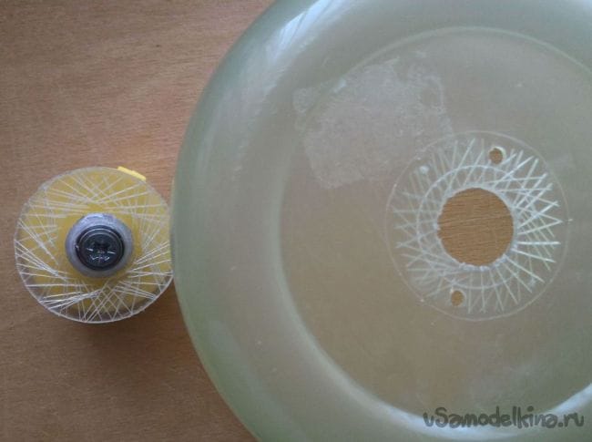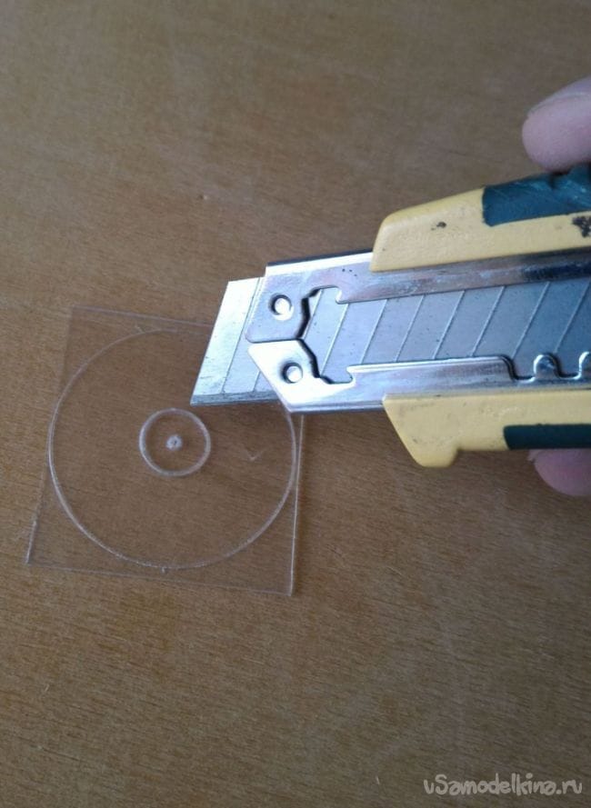 И уже вышеописанным способом нацарапываем на пластике новый круг. В результате получилось так.