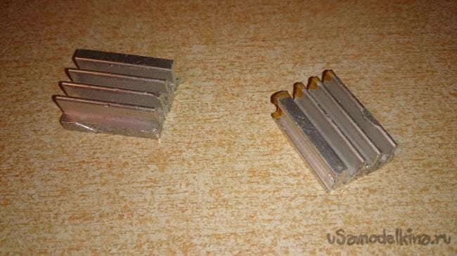 Необходимо взять радиатор и приклеить его к подложке. У меня оказался немного большой, и я поделил его на 2 части.