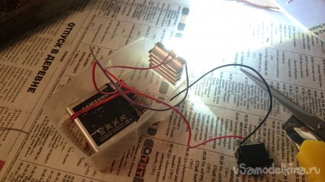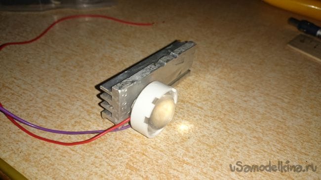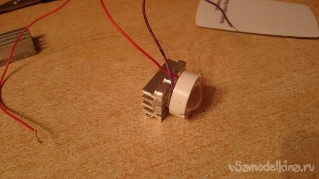 Дальше я припаял светодиод на контактную подложку, естественно через термопасту. Вывел провода.