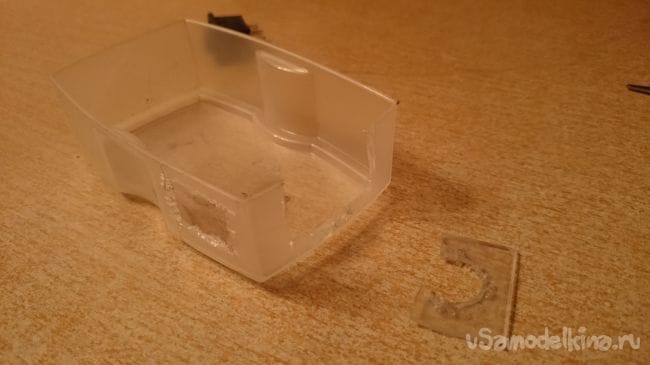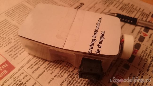 взял вот такую "штуковину" выкинул крышку, вырезал над большим пальцем отверстие под переключатель, и частично переднюю стенку под радиатор.