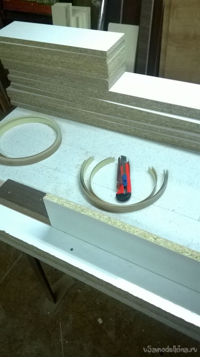 Также обклеиваем кромкой (только уже широкой) с трех сторон.