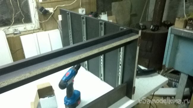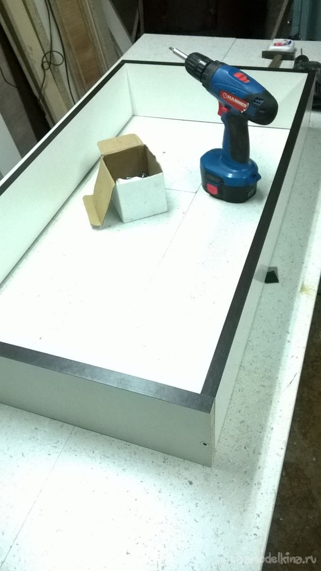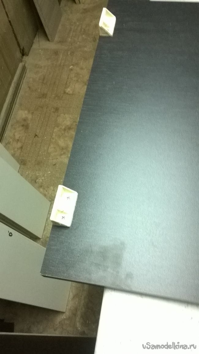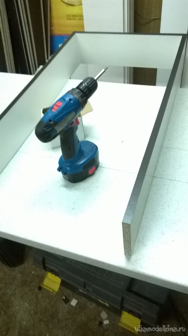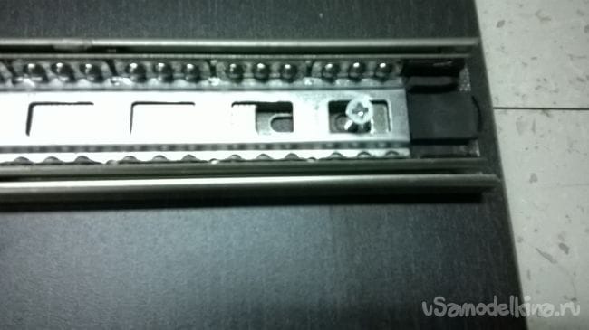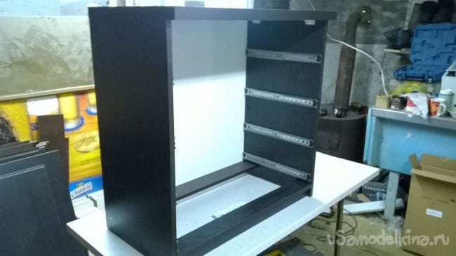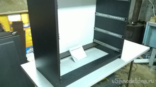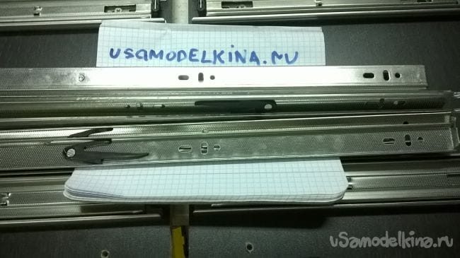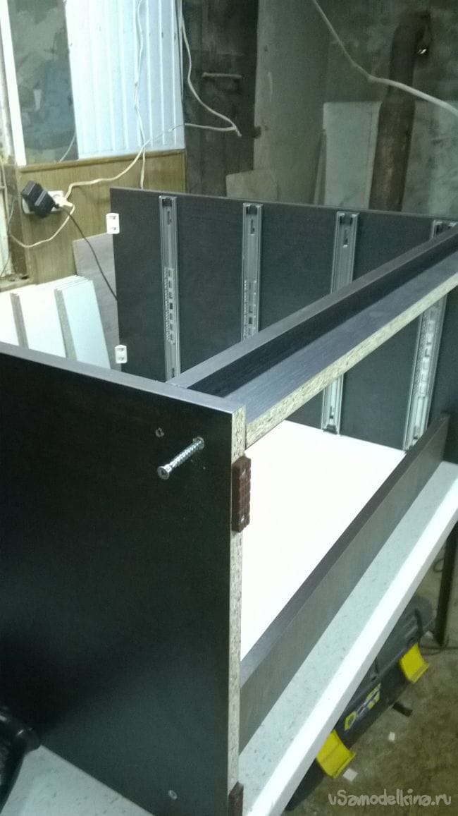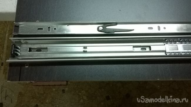 Пришло время ящиков. Возьмем планки от направляющих и закрепляем их на ящики.