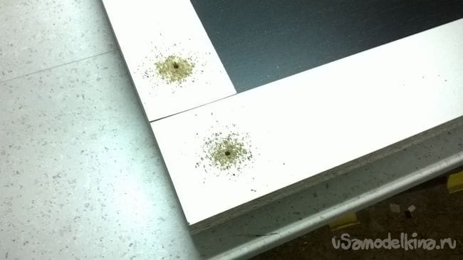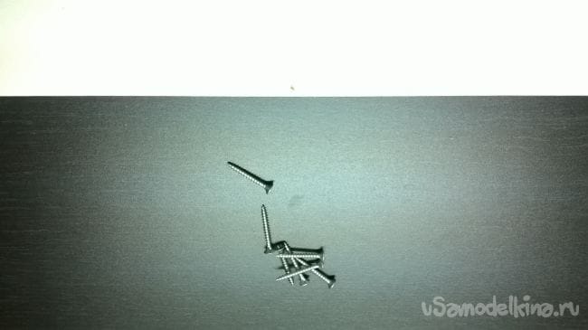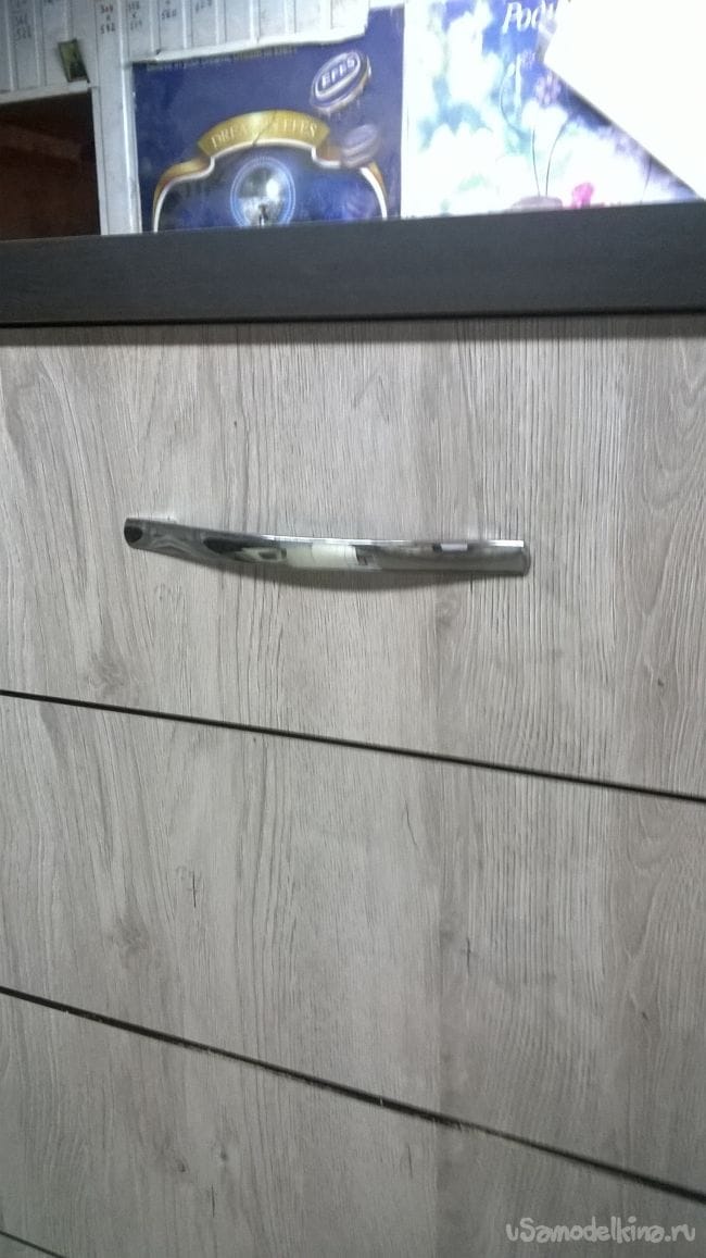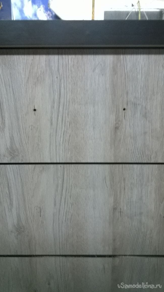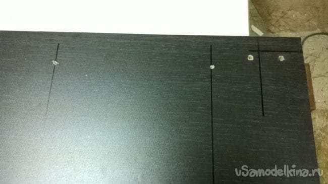Размечаем отверстия под ручки. Сверлим также на 4,5 мм. В комплекте с ручками идут винты на 20 мм они нам будут коротки, поэтому надо прикупить восемь винтов на 40 мм.