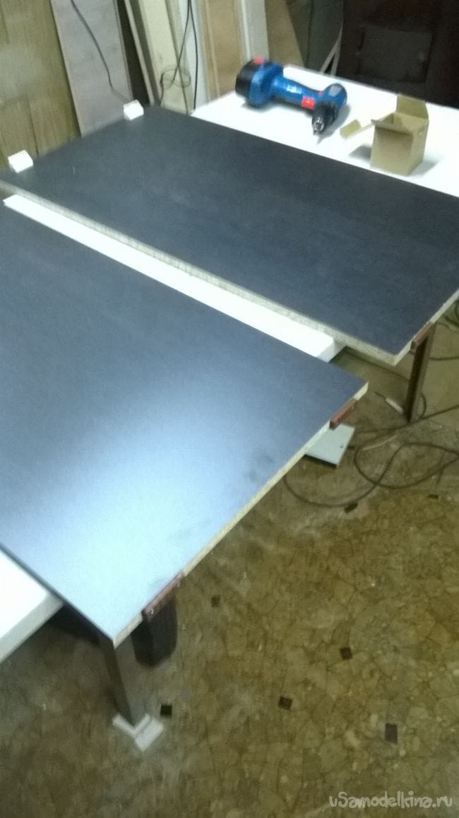 И стягиваем их мебельной стяжкой.