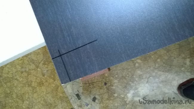 Переворачиваем цоколь на ребро и подставляем его со стороны кромки, прочерчиваем.