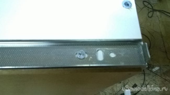 Возьмем планку 864*90 мм. просверливаем и крепим к боковине.