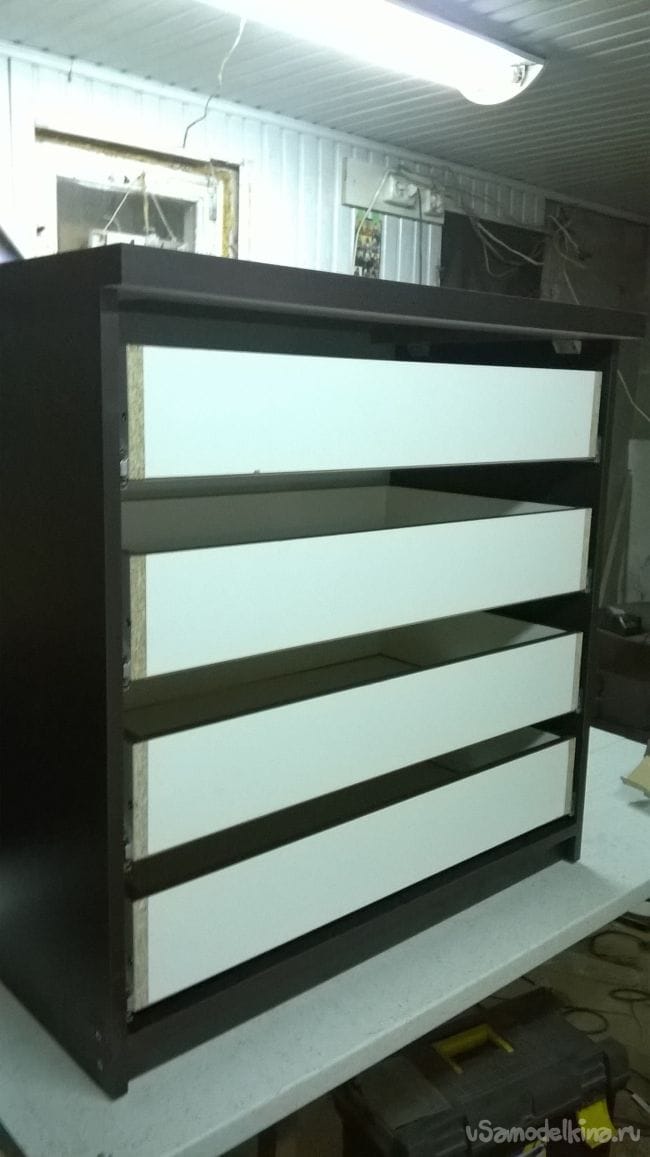 Первый ящик готов, вставляем его в комод.