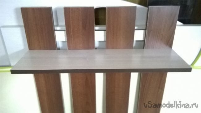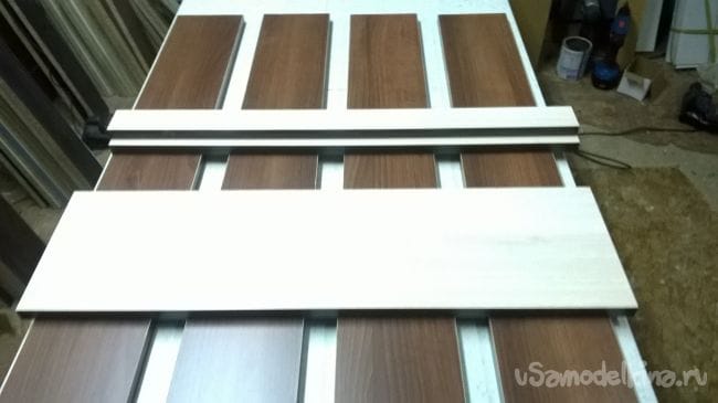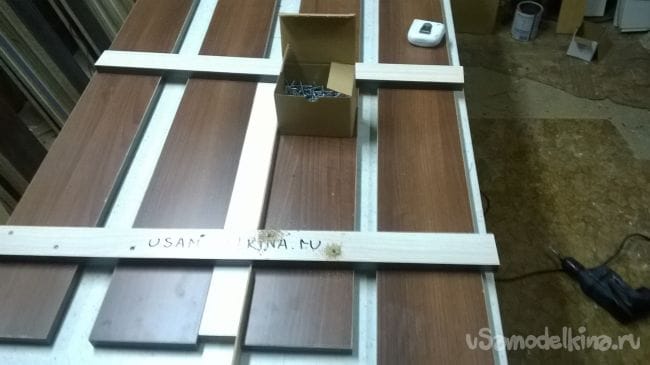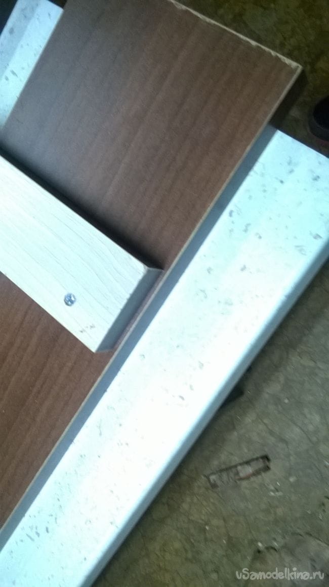 Отступив от края 110 мм. налаживаем сверху крепежную планку 695*50 мм.