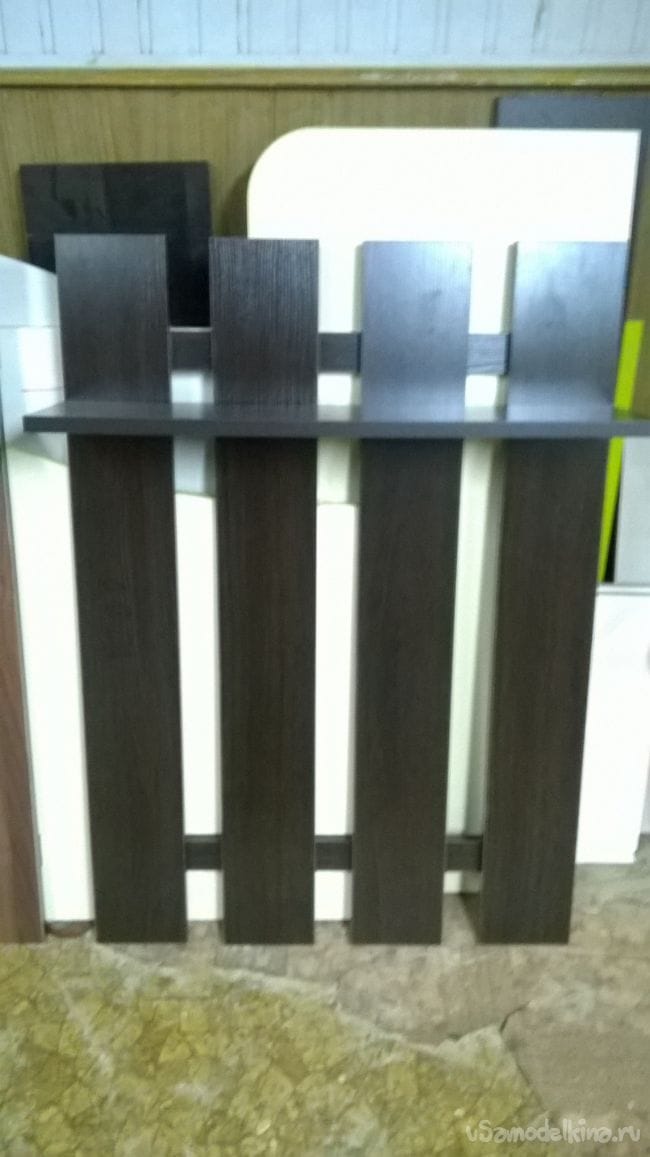 Я собрал вешалку скомбинировав два цвета, основной более темный, а полка светлая мне кажется так более привлекательней.