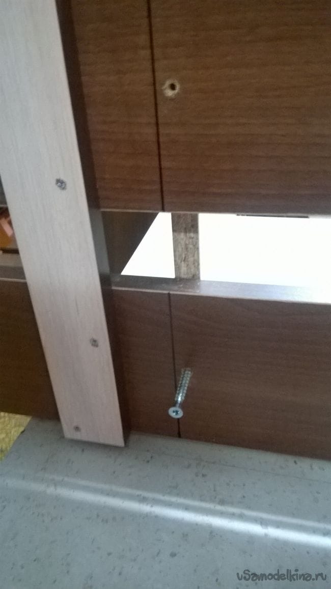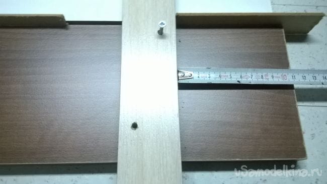 Также с низу промеряем 110 мм сверлим и закручиваем саморезы.