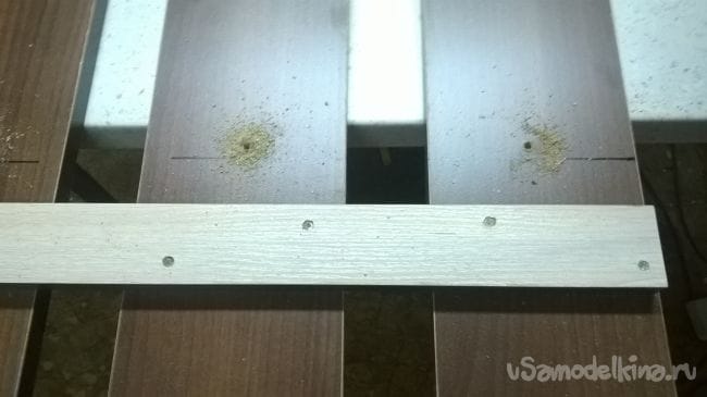 Отступив от линии 10 мм примерно по середине планки сверлим сквозные отверстия.